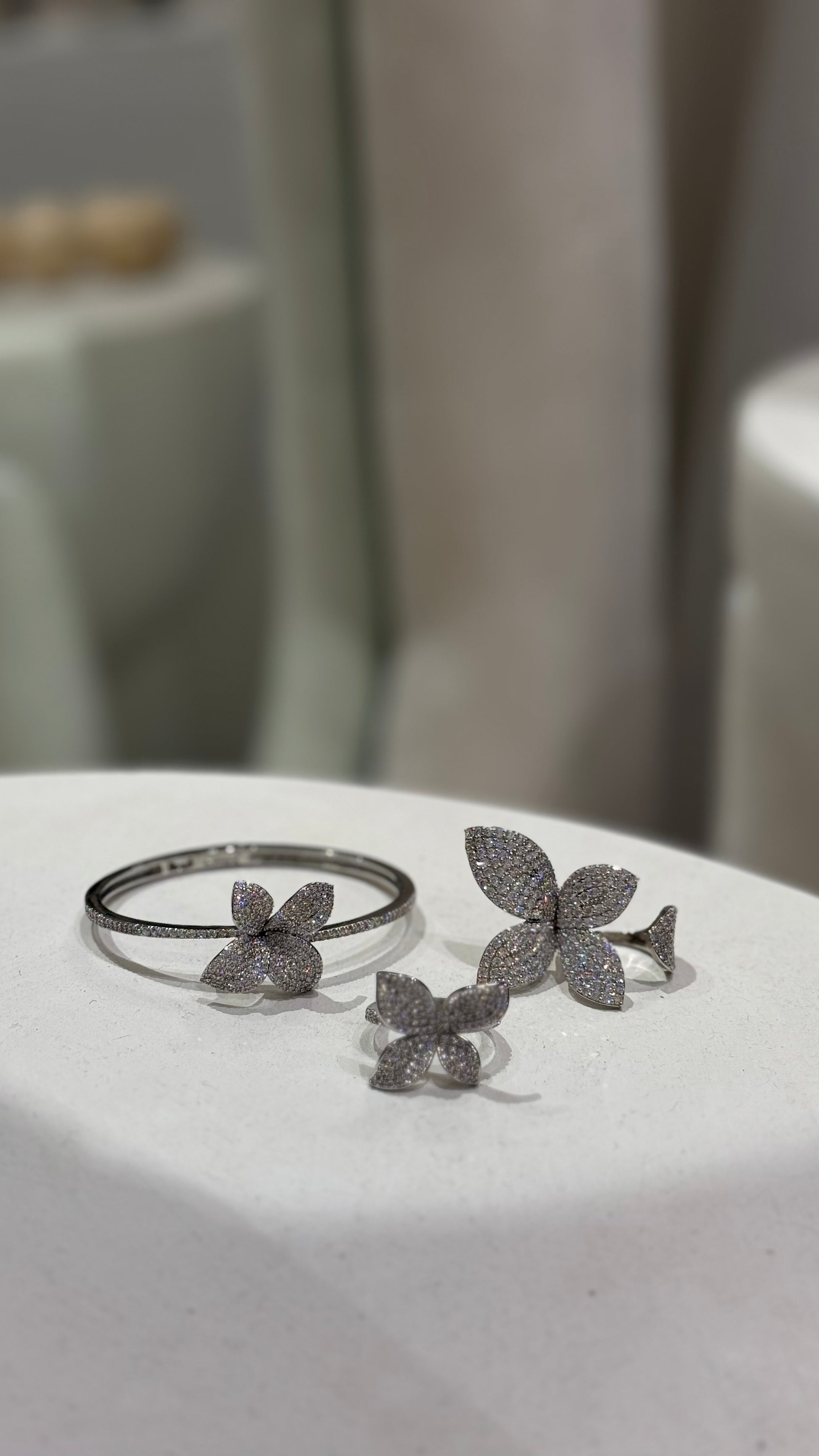 - المقاس: الخواتم والأساور قابلة للتعديل. خاتم "فيور" الأكبر يناسب المقاسات من ٦ فما فوق.